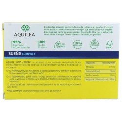 También destaca entre los productos Aquilea, Aquilea Sueño. Se trata de comprimidos bicapa que contienen melatonina para facilitar el sueño. Pueden ser muchas las razones que influyan en buen descanso, pero normalmente hasta las acciones más cotidianas como ir a trabajar pueden productor tensión o estrés que tengan como consecuencia dificultades para conciliar el sueño, lo que hará que no se descanse bien y que, por lo tanto, al día siguiente no se rinda debidamente.